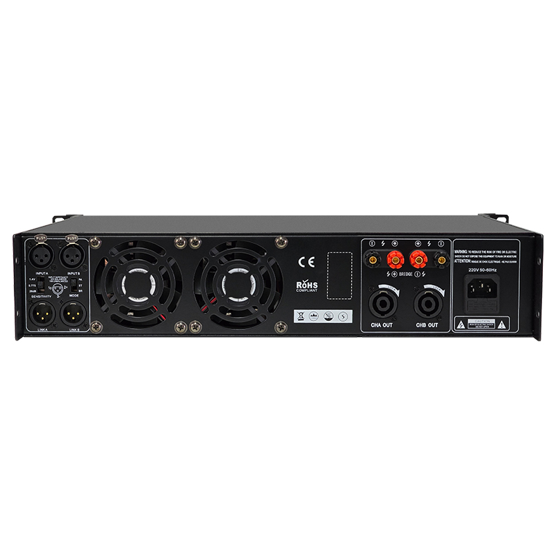 2. Rated power 8 Ω: 2 × 850W